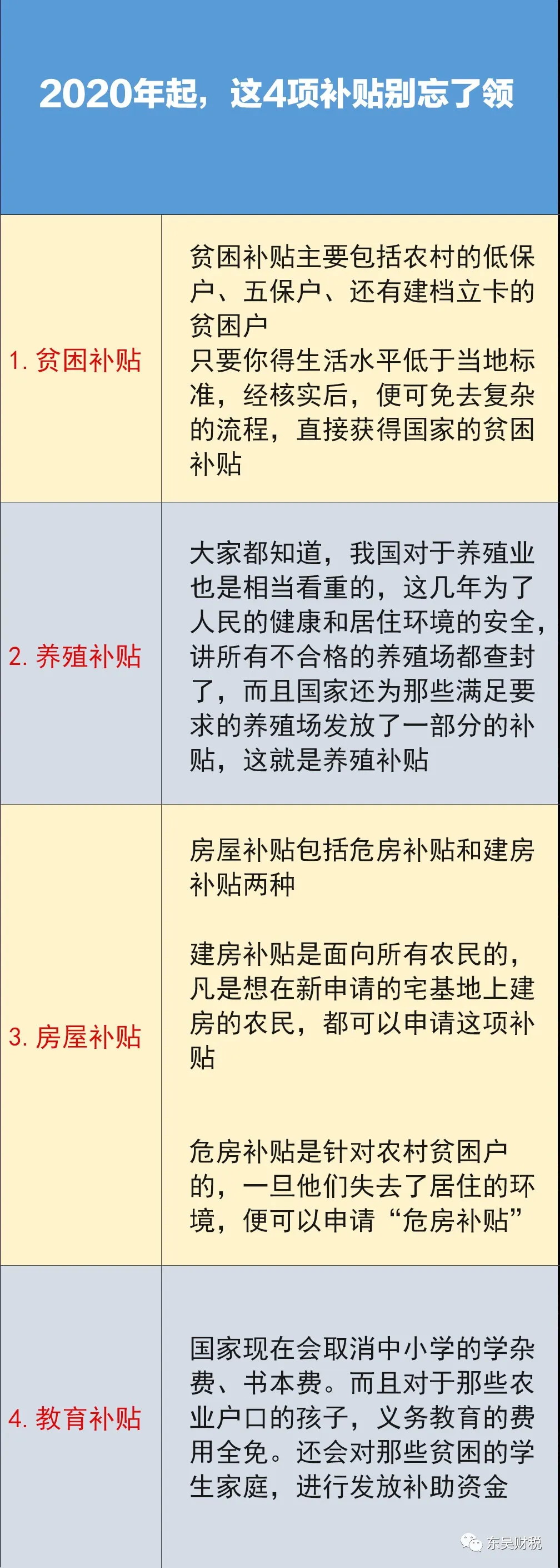 此外,2020年起,农村户口的朋友还有以下4项补贴可以领:
