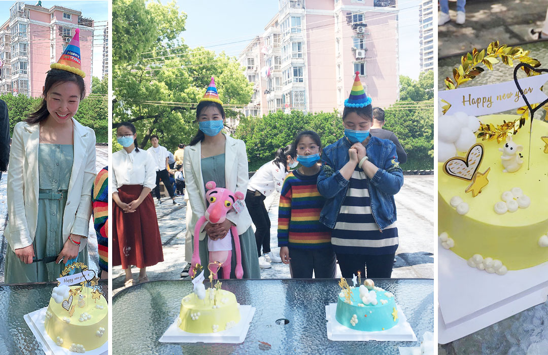 活动当天,公司还有两位小伙伴同一天过生日,公司为她们精心准备了生日惊喜与生日礼物,此刻的两位美女在50多位小伙伴为他们唱生日祝福歌,收礼物,吃精美的蛋糕,一起为寿星祝福是多么温馨的一幕!